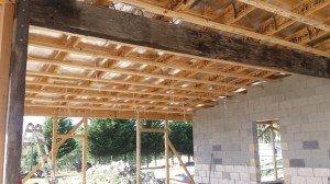 Electrical wiring and roof battens in the main area