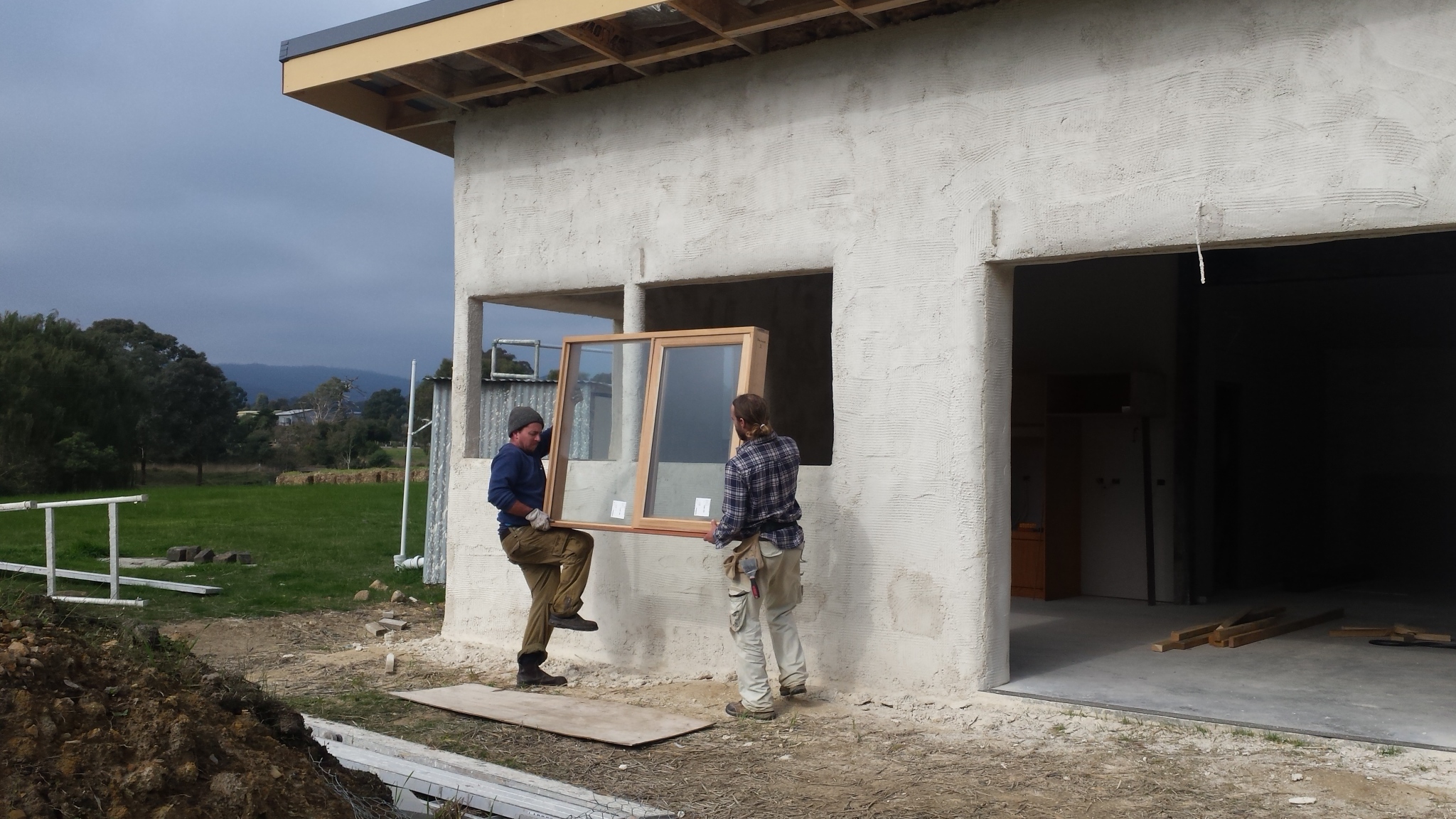 Benny Boy and Matty mounting the first main kitchen window