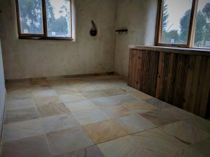 Sandstone tiles in the bedrooms, cleaning the grout off these were a glimpse of hell